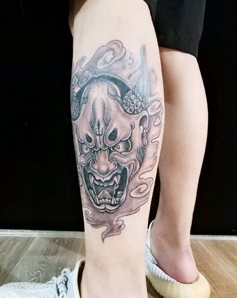 当前位置: 首页 >福建省泉州市纹身店-泉州鹏海刺青纹身图案>修改上色 小腿班若纹身图片_腿部新传统纹身图案