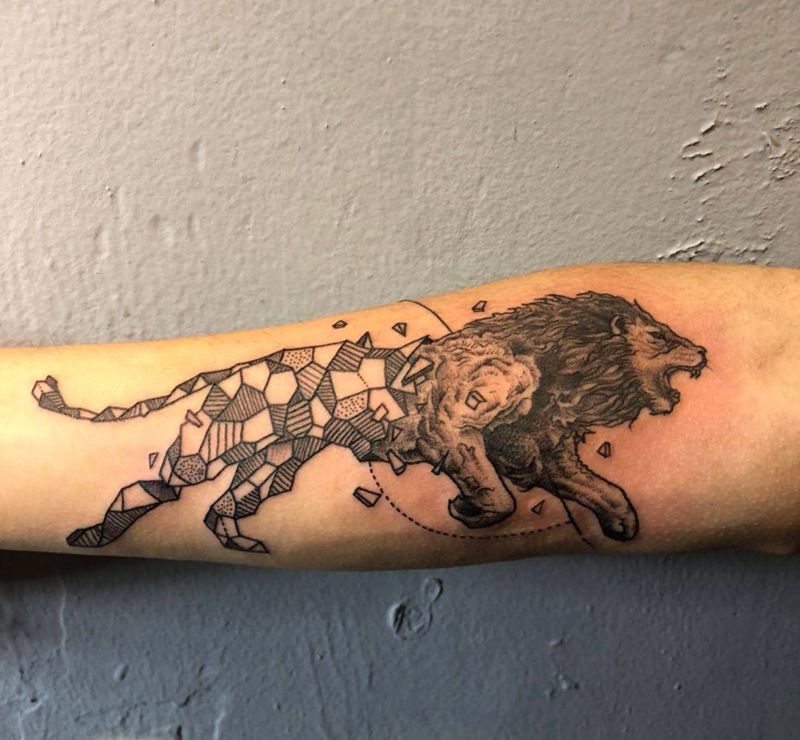 几何狮子纹身图片_手部手臂点刺几何纹身图案