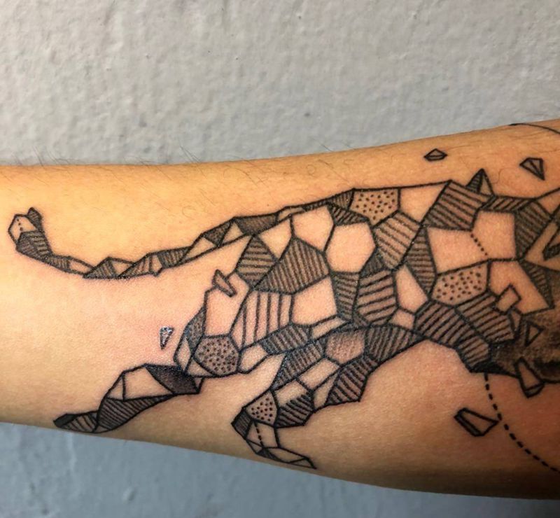 几何狮子纹身图片_手部手臂点刺几何纹身图案