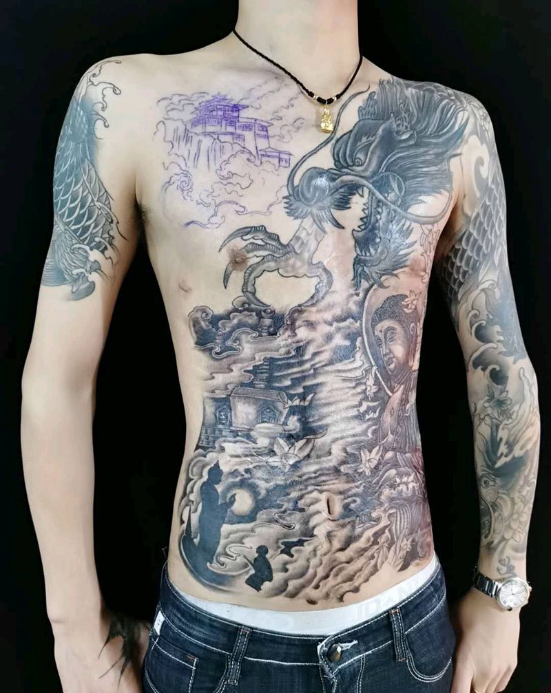 当前位置: 首页 >福建省泉州市纹身店-泉州鹏海刺青纹身图案>遮盖伤疤未完待续纹身图片_腹部胸部新传统纹身图案