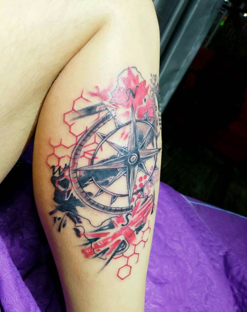 当前位置: 首页 >福建省泉州市纹身店-泉州鹏海刺青纹身图案>小腿指南针纹身图片