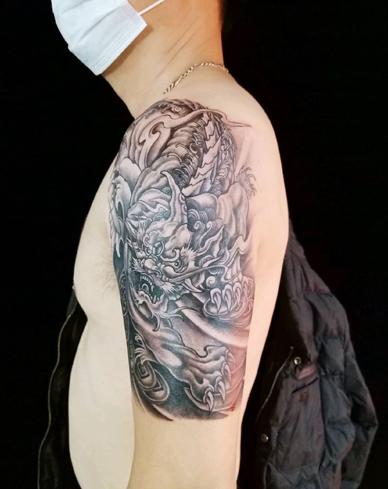 • 纹身吧推荐的披肩图腾半胛纹身图案作品展示
