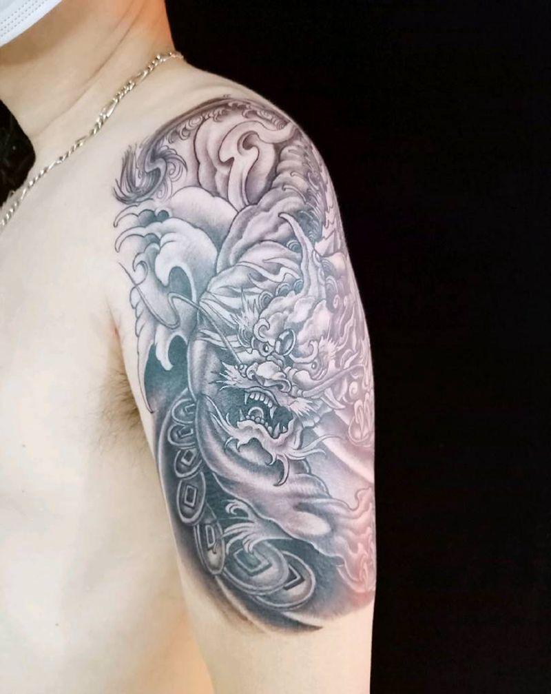 • 纹身吧推荐的披肩图腾半胛纹身图案作品展示