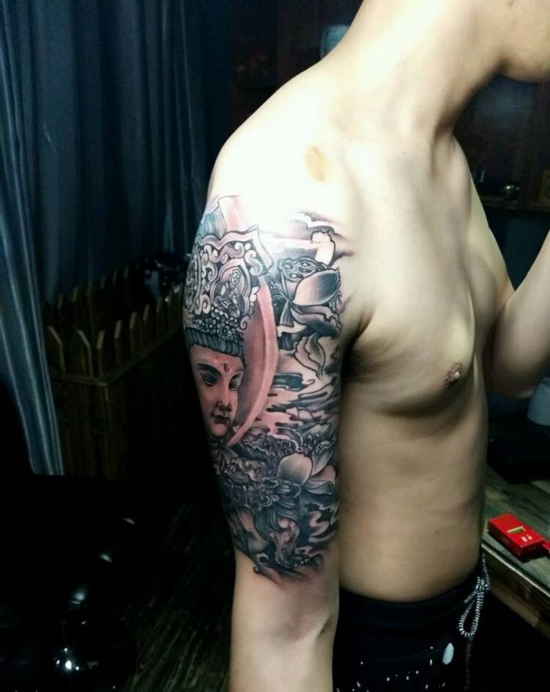 大臂佛祖遮盖旧纹身纹身图片