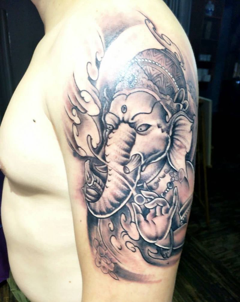 当前位置: 首页 >福建省泉州市纹身店-泉州鹏海刺青纹身图案>大臂象神纹身图片