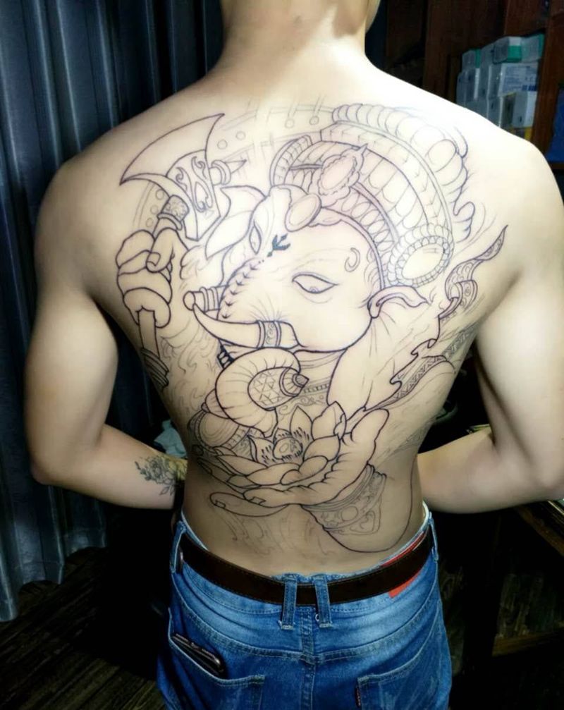 当前位置: 首页 >福建省泉州市纹身店-泉州鹏海刺青纹身图案>满背象神线条下次待续纹身图片
