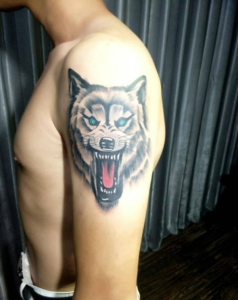 当前位置: 首页 >福建省泉州市纹身店-泉州鹏海刺青纹身图案>大臂狼头纹身图片