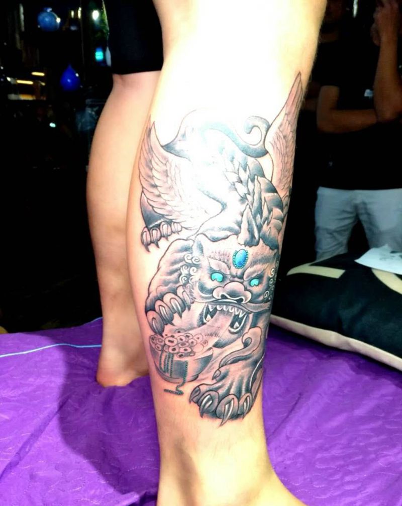 当前位置: 首页 >福建省泉州市纹身店-泉州鹏海刺青纹身图案>小腿貔貅纹身图片