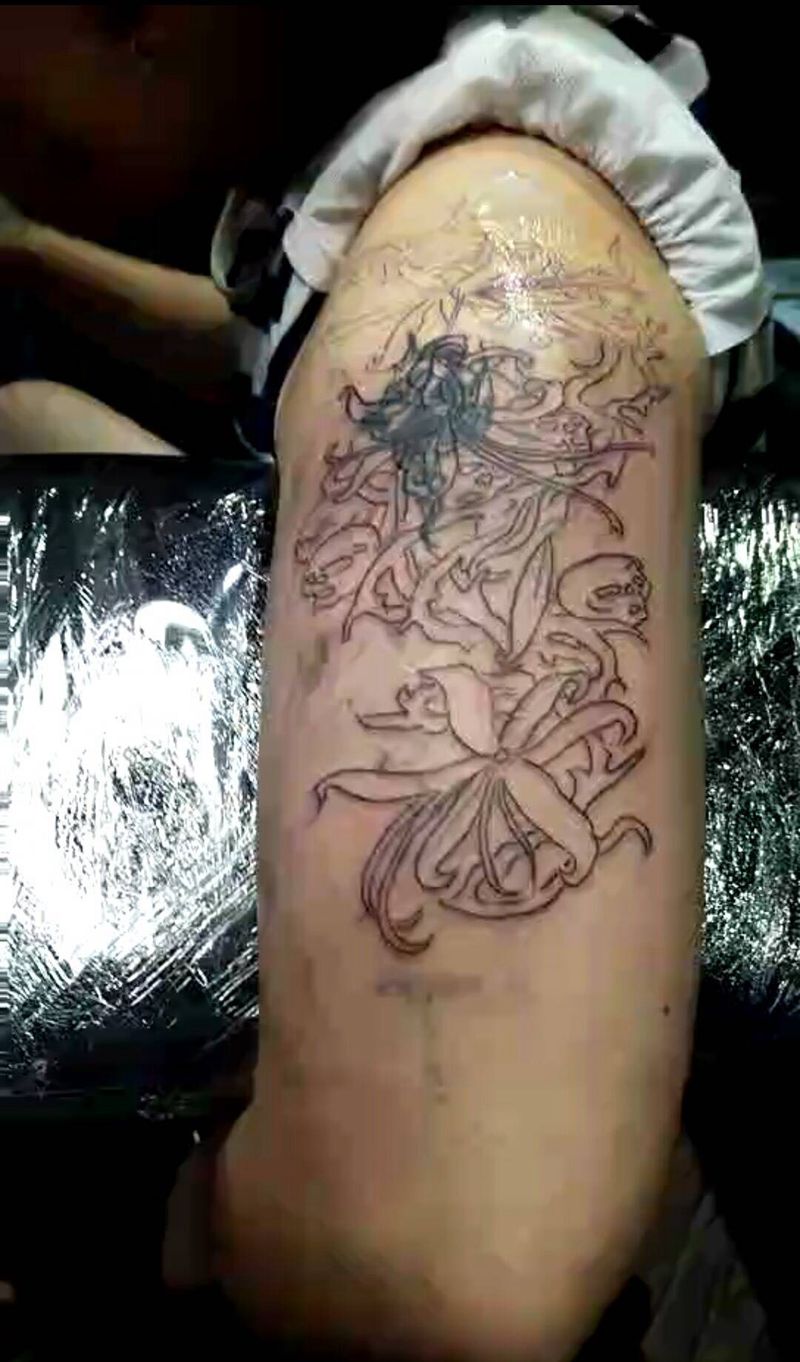 当前位置: 首页 >福建省泉州市纹身店-泉州鹏海刺青纹身图案>遮盖前后彼岸花纹身图片