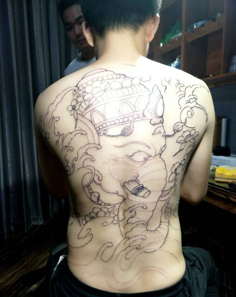 当前位置: 首页 >福建省泉州市纹身店-泉州鹏海刺青纹身图案>满背象神未完待续纹身图片