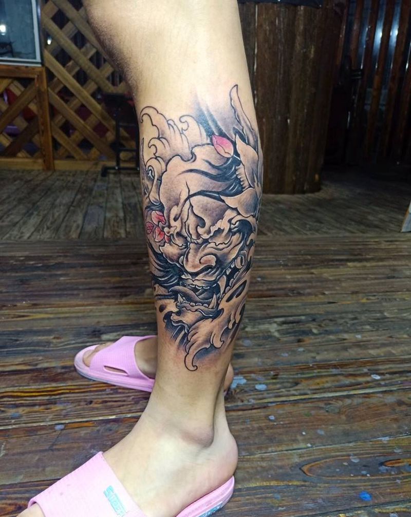 当前位置: 首页 >福建省泉州市纹身店-泉州鹏海刺青纹身图案>小腿班若纹身图片