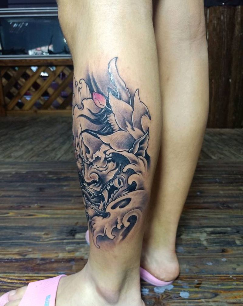 当前位置: 首页 >福建省泉州市纹身店-泉州鹏海刺青纹身图案>小腿班若纹身图片