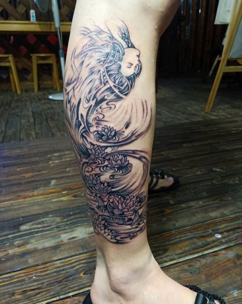 • T网红王老大花腿龙纹身图片_腿部新传统纹身图案