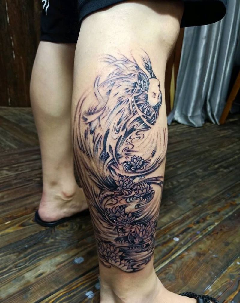 • T网红王老大花腿龙纹身图片_腿部新传统纹身图案