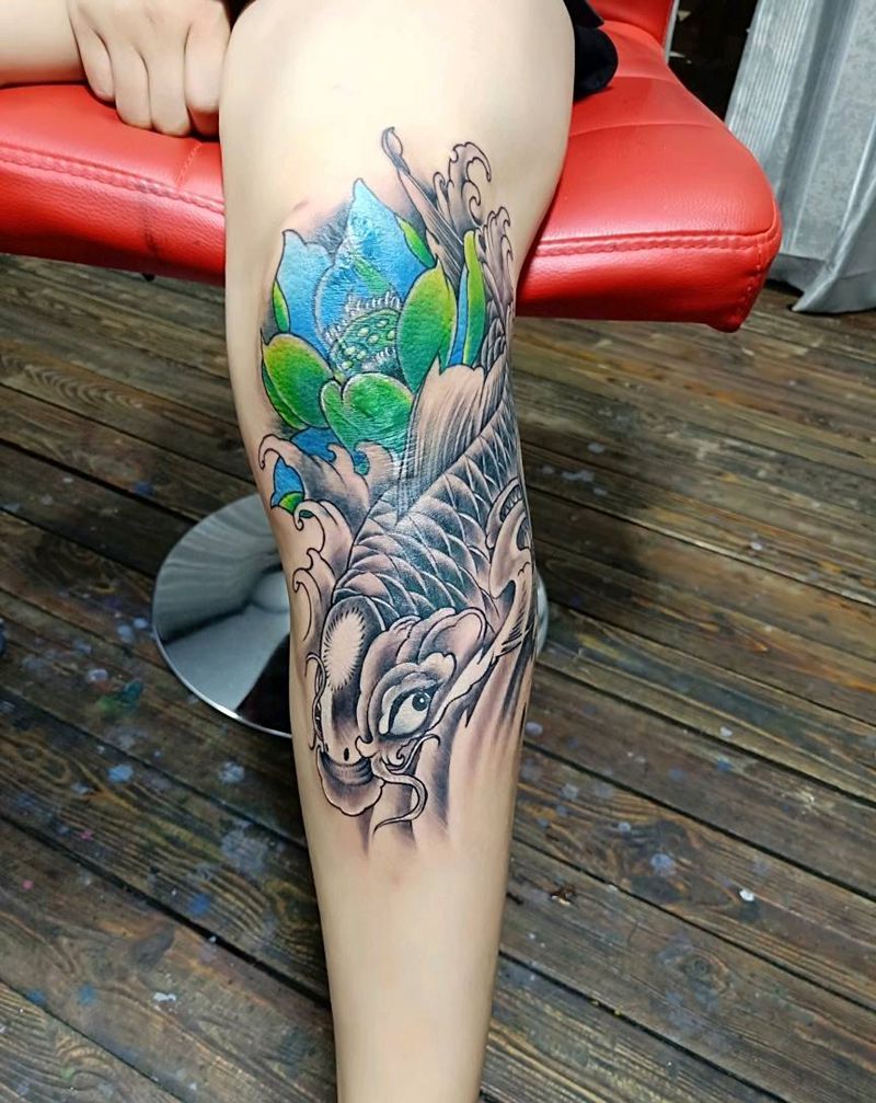 • T网红王老大花腿龙纹身图片_腿部新传统纹身图案