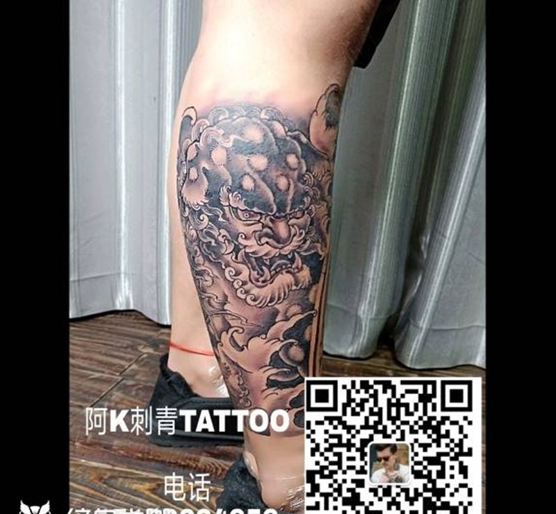 • T网红王老大花腿龙纹身图片_腿部新传统纹身图案