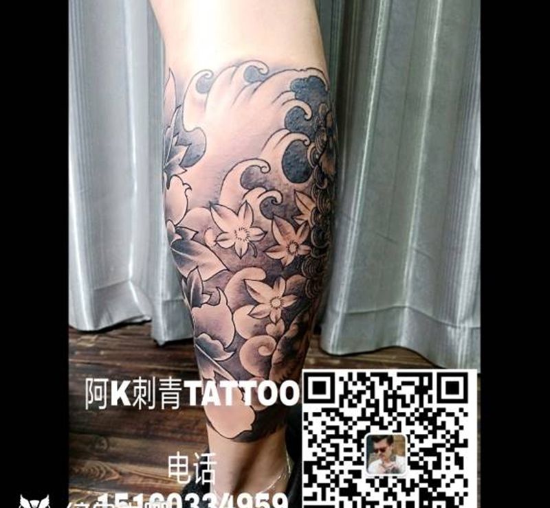 • T网红王老大花腿龙纹身图片_腿部新传统纹身图案