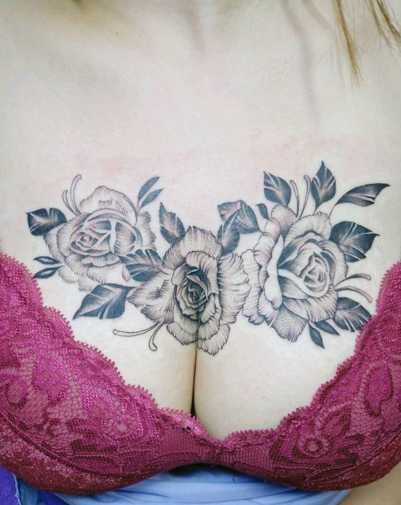 • 女性大花胸纹身_43张霸气漂亮的女性大花胸纹身图案作品