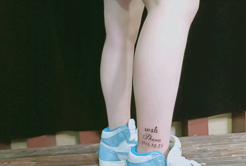 当前位置: 首页 >福建省泉州市纹身店-泉州鹏海刺青纹身图案>小清新纹身图片_腿部花体字新传统纹身图案