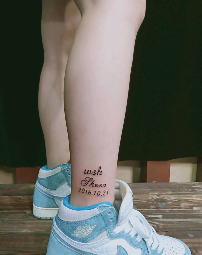 当前位置: 首页 >福建省泉州市纹身店-泉州鹏海刺青纹身图案>小清新纹身图片_腿部花体字新传统纹身图案