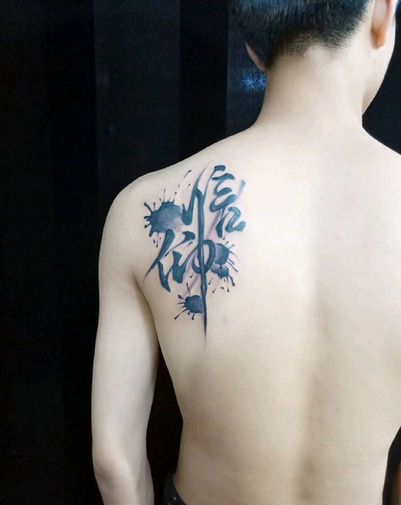 水墨风格纹身图片_肩部水墨纹身图案