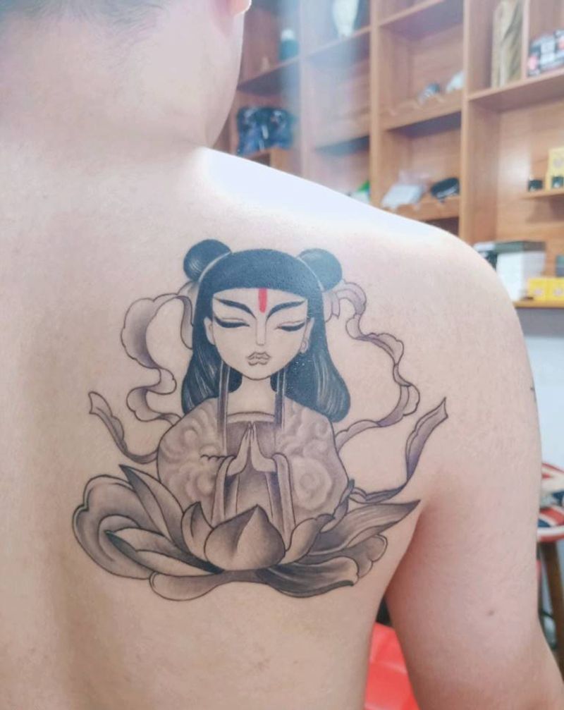 恢复后哪吒纹身图片_背部新传统纹身图案