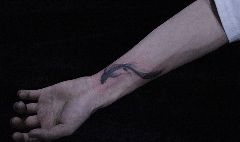 水墨金鱼纹身图片_成品手部手臂国画原创纹身图案