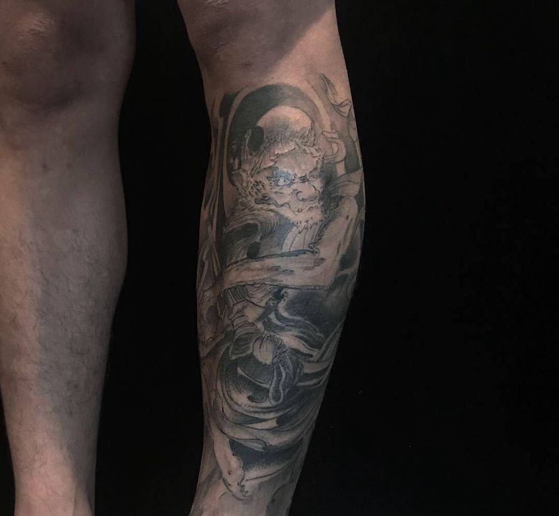 • T网红王老大花腿龙纹身图片_腿部新传统纹身图案