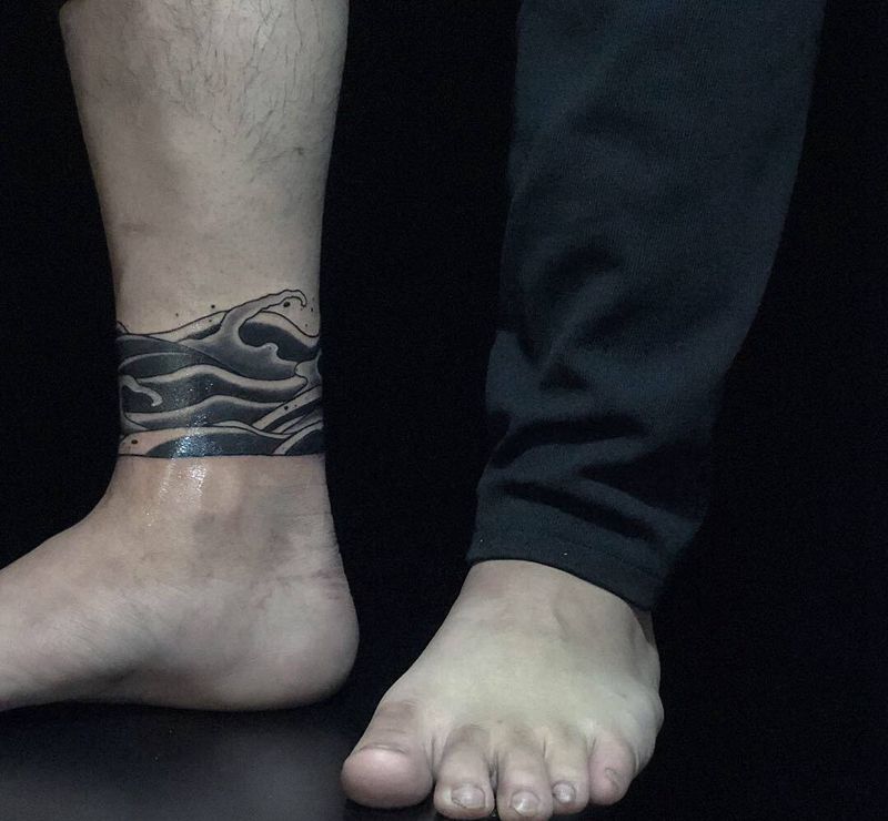 水浪腿环纹身图片_腿部脚部水墨水浪海浪纹身图案