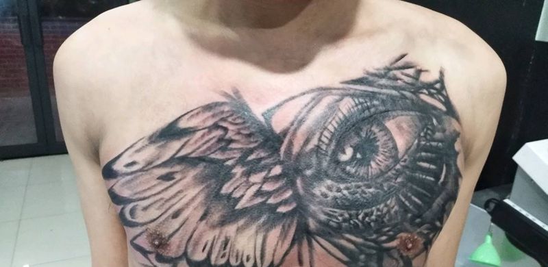 写实泼墨遮盖纹身图片_胸部欧美写实动物人物成品纹身图案