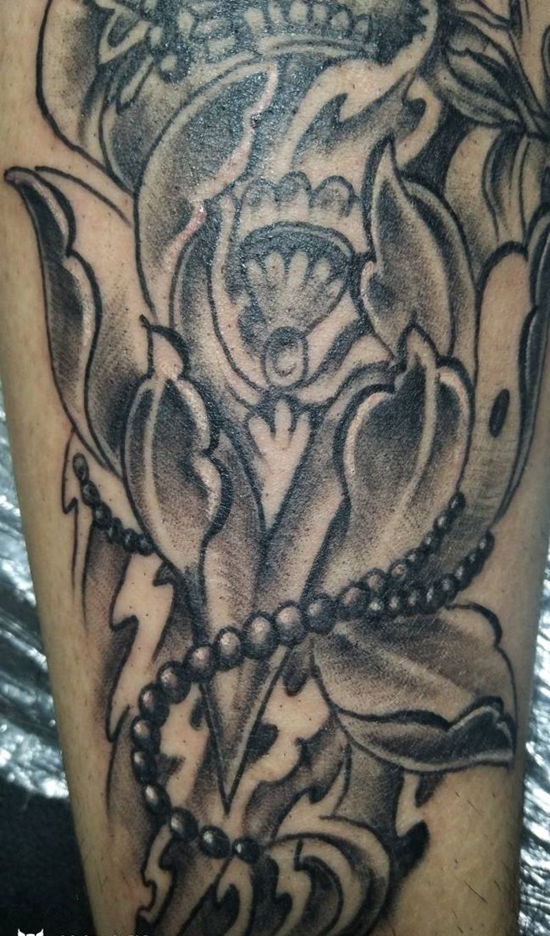 当前位置: 首页 >福建省泉州市纹身店-纯针刺青纹身图案>降魔杵纹身图片_腿部传统植物鬼神图腾成品纹身图案