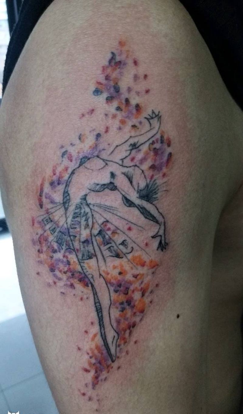 当前位置: 首页 >福建省泉州市纹身店-纯针刺青纹身图案>芭蕾舞女孩泼墨纹身图片