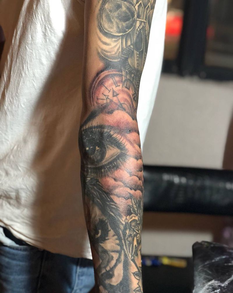 欧美花臂纹身图片_肩部手臂欧美写实纹身图案