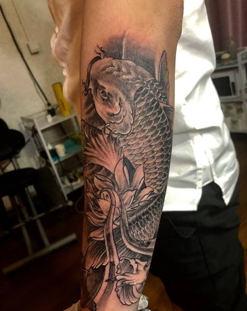 鲤鱼遮盖纹身图片_成品手臂手部传统动物图腾原创纹身图案