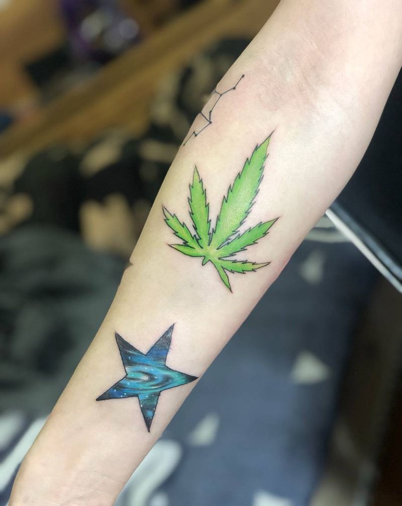 麻叶星空纹身图片_手臂手部水彩几何纹身图案