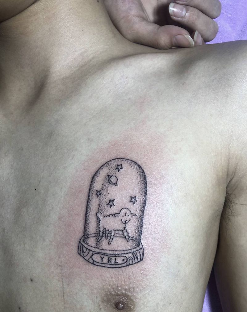 玻璃罐里的绵羊纹身图片_胸部手臂几何点刺纹身图案