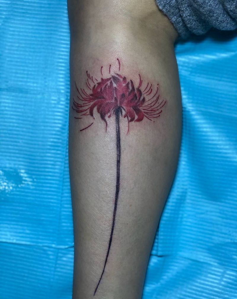 当前位置: 首页 >福建省泉州市纹身店-纯针刺青纹身图案>彼岸花纹身图片_手臂腿部水彩水墨纹身图案