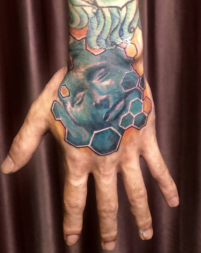 当前位置: 首页 >福建省泉州市纹身店-纯针刺青纹身图案>手背纹身图片_手部手臂水彩New School纹身图案