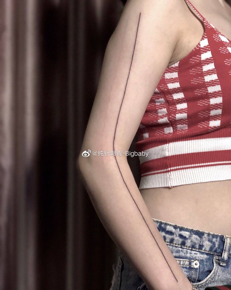 直线射线纹身图片_肩部手臂几何点刺纹身图案