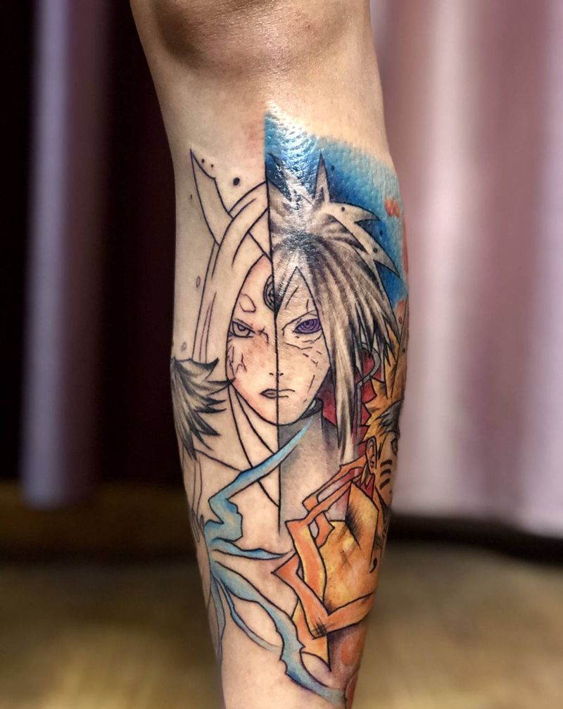 当前位置: 首页 >福建省泉州市纹身店-纯针刺青纹身图案>火影纹身图片_腿部脚部水墨水彩火影纹身图案