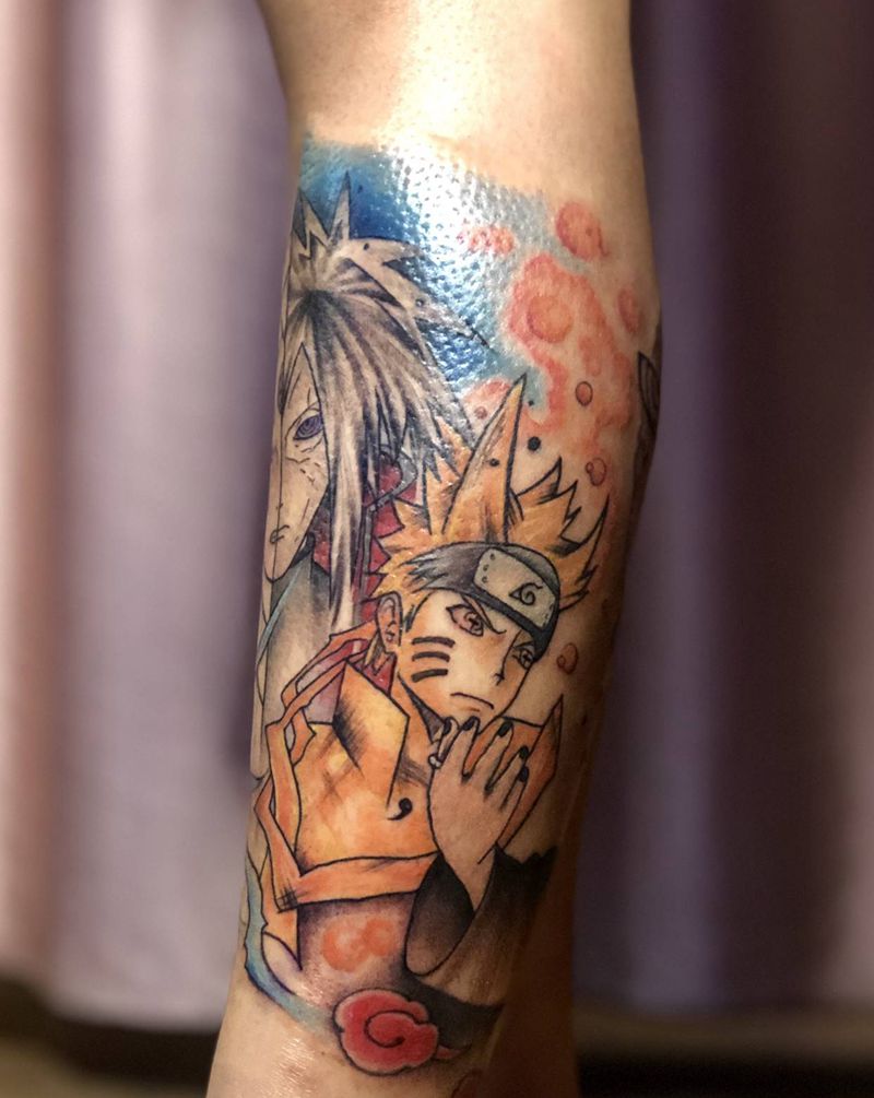 火影纹身图片_腿部脚部水墨水彩火影纹身图案