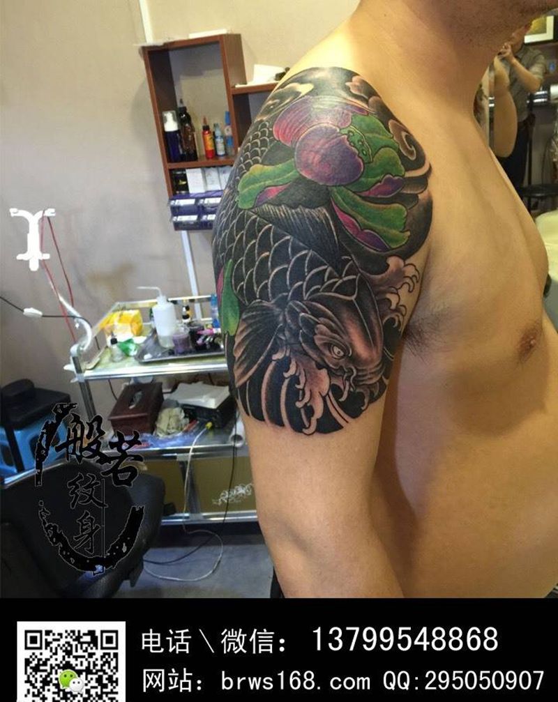 当前位置: 首页 >福建省泉州市纹身店-般若纹身纹身图案>鲤鱼遮盖纹身图片_肩部传统纹身图案