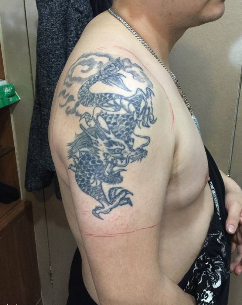 当前位置: 首页 >福建省泉州市纹身店-般若纹身纹身图案>鲤鱼遮盖纹身图片_肩部传统纹身图案