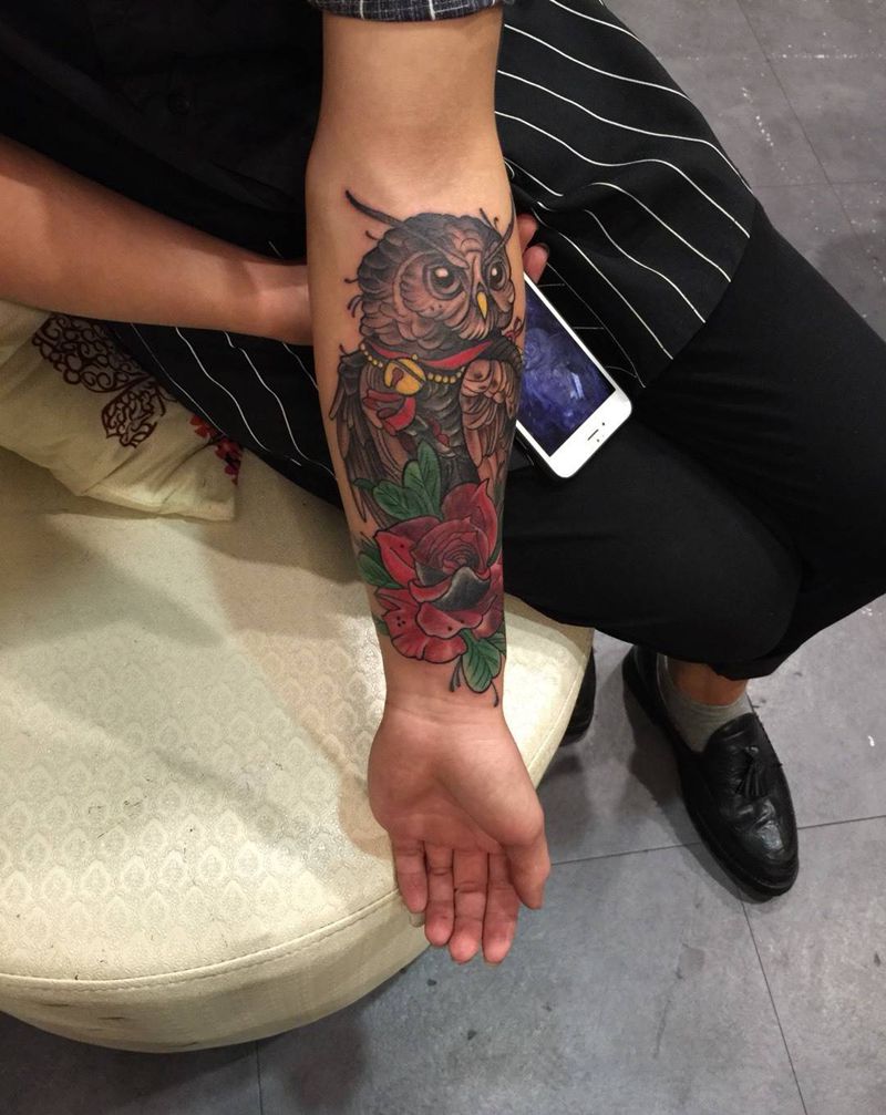 猫头鹰纹身图纹身图片_成品手部传统动物纹身图案
