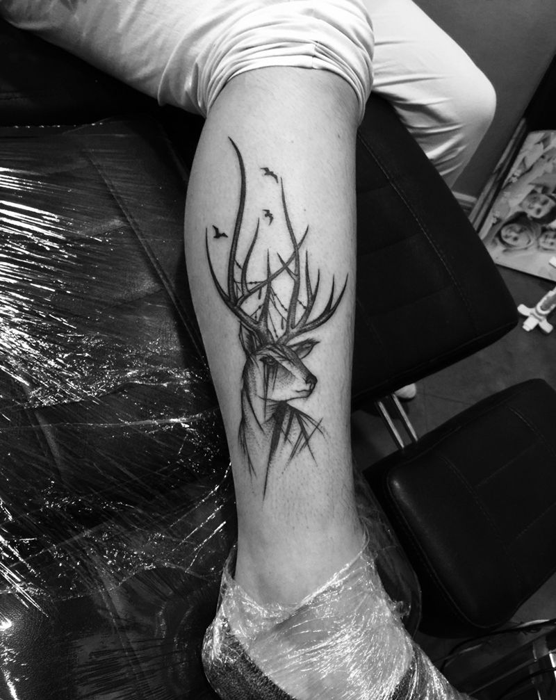 当前位置: 首页 >福建省泉州市纹身店-般若纹身纹身图案>麋鹿纹身图纹身图片_腿部传统几何纹身图案