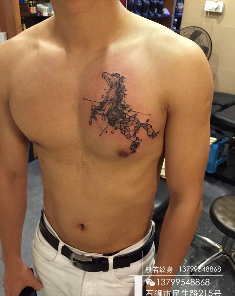 当前位置: 首页 >福建省泉州市纹身店-般若纹身纹身图案>几何马纹身图片_成品胸部传统几何纹身图案