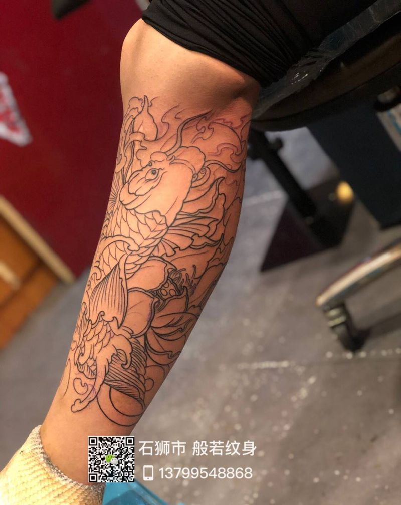 当前位置: 首页 >福建省泉州市纹身店-般若纹身纹身图案>鲤鱼线条纹身图片