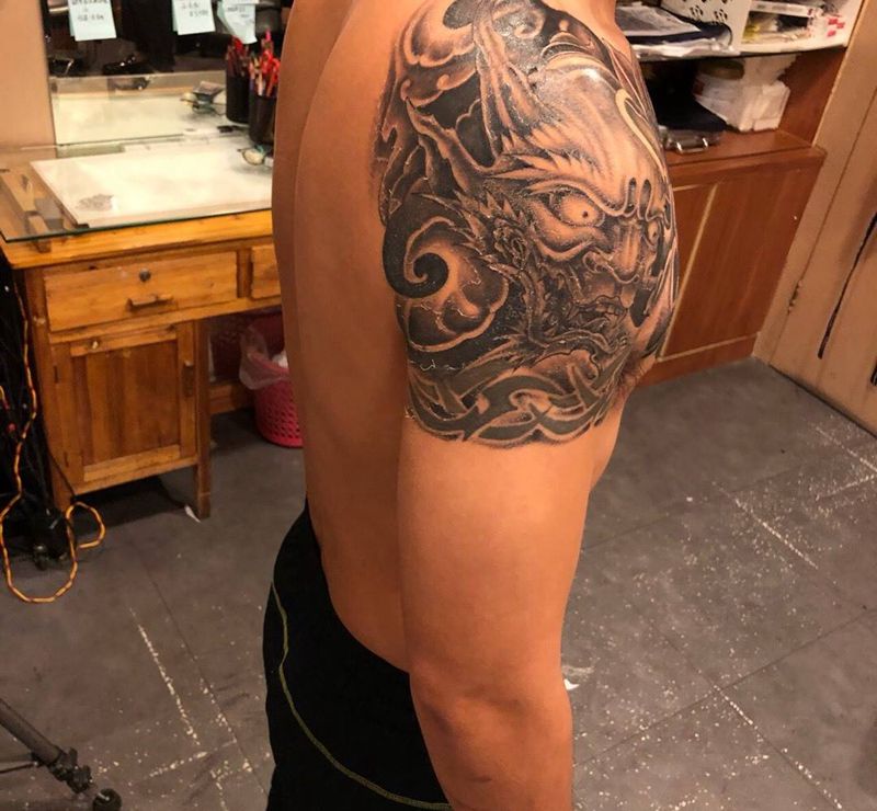 当前位置: 首页 >福建省泉州市纹身店-般若纹身纹身图案>披肩龙添加半胛纹身图片