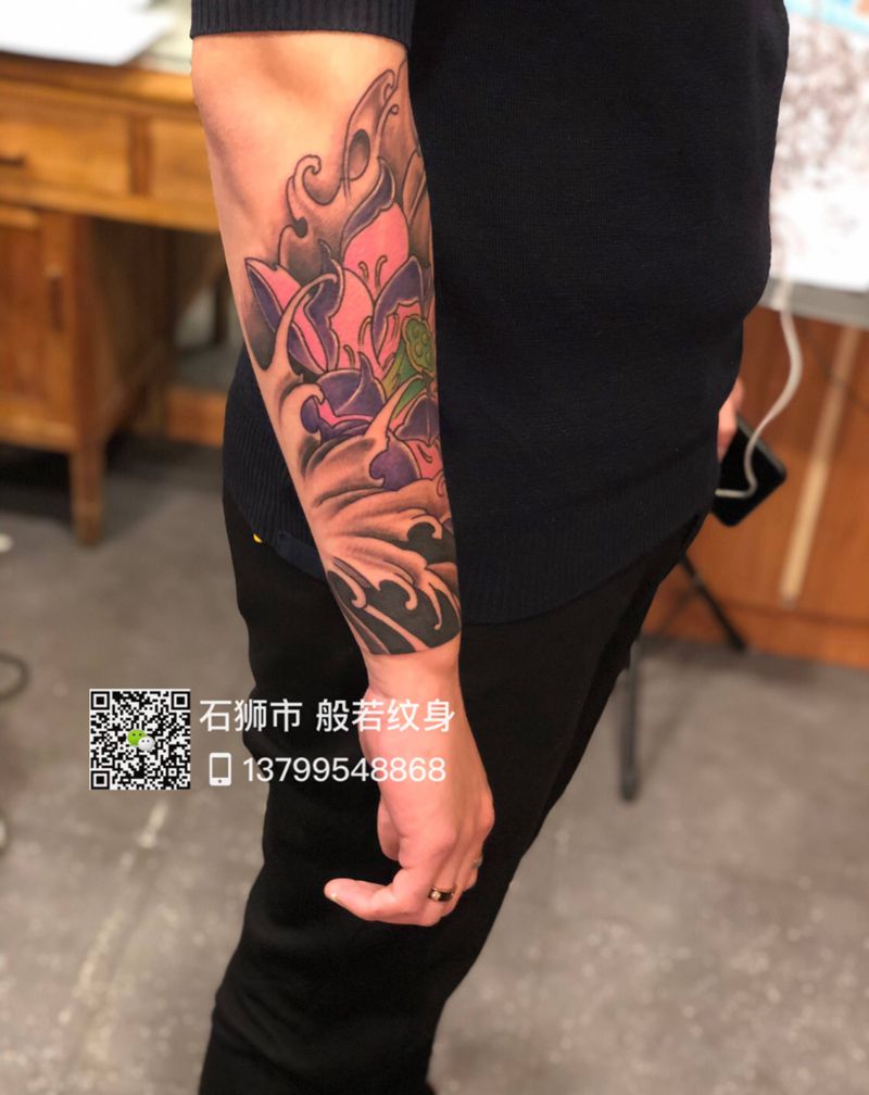 当前位置: 首页 >福建省泉州市纹身店-般若纹身纹身图案>荷花水浪纹身图片