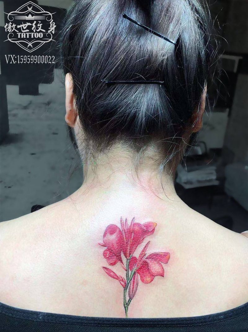 听说这朵叫 美人蕉,今天的作业,请大家批阅。纹身图片_背部写实花纹身图案
